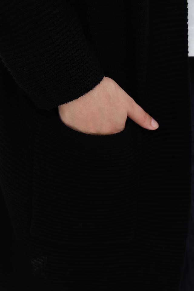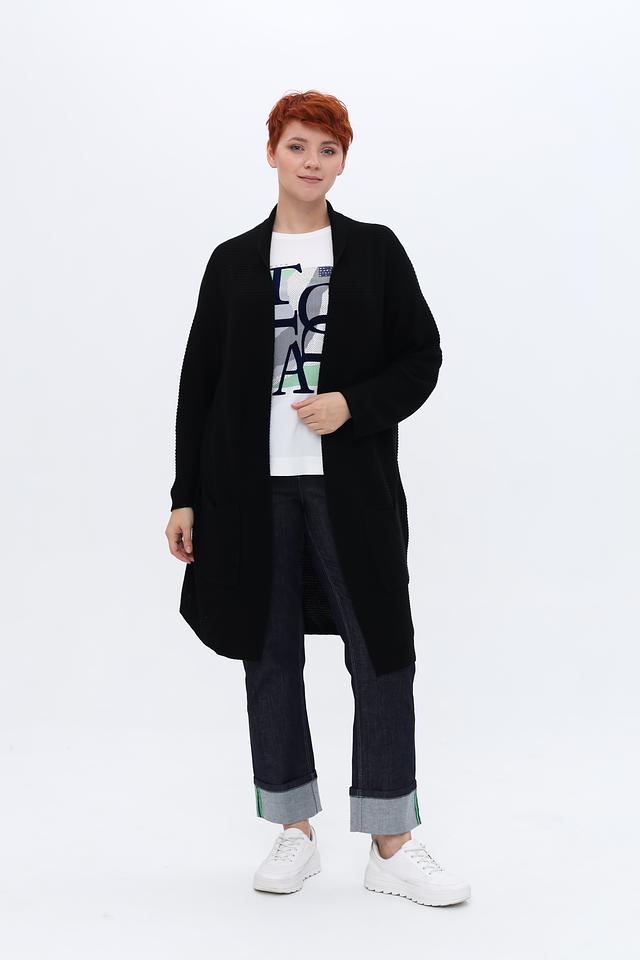 Кардиган имеет прямой крой и длину до середины икры, что делает его универсальным для женщин разного роста и комплекции. Отсутствие застежек обеспечивает максимальный комфорт в носке, а мягкий трикотаж приятен к телу.