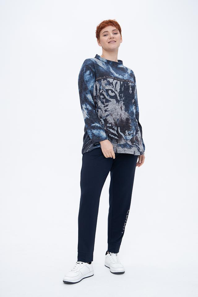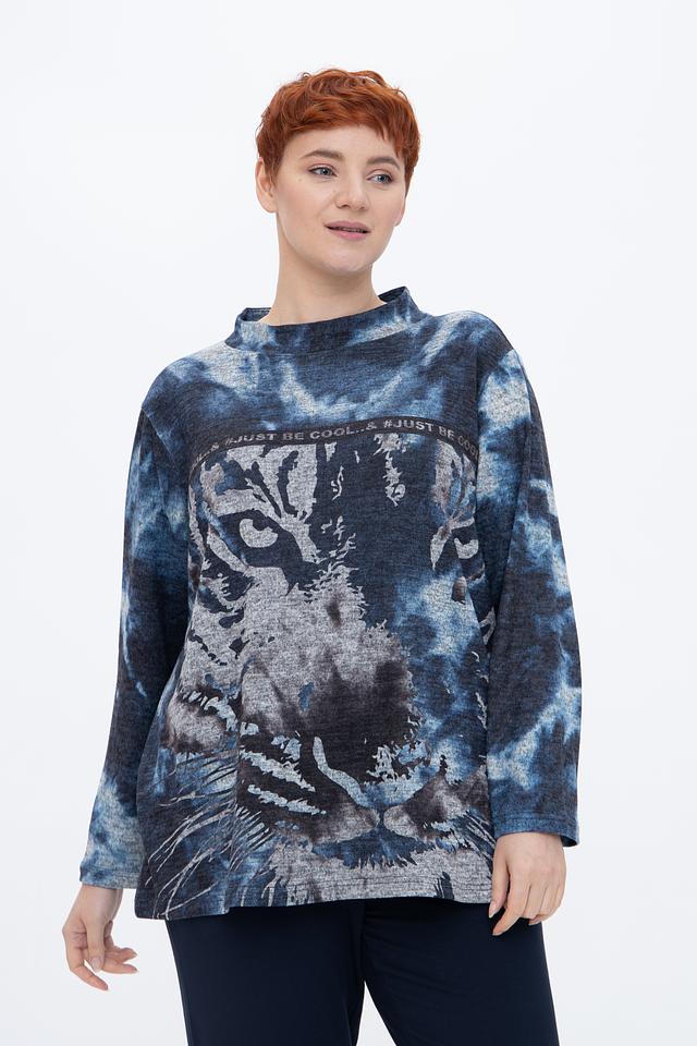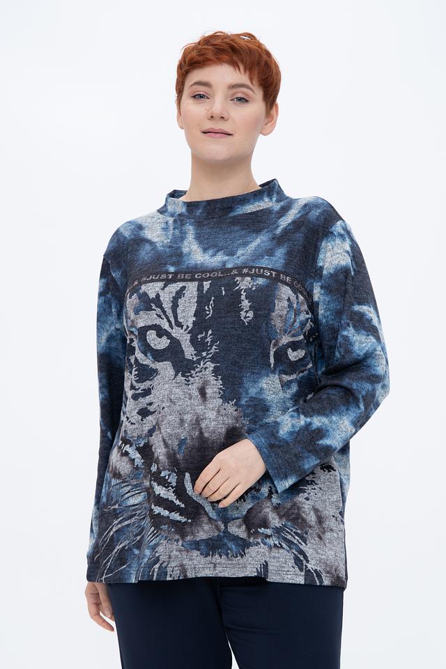 Женский пуловер Doris Streich синего цвета с оригинальным принтом тигра и округлым вырезом. Модель выполнена из мягкого и приятного к телу сочетания полиэстера, вискозы и эластана, обеспечивающего комфорт при носке. Состав: полиэстер 72%, вискоза 25%, эластан 3%
