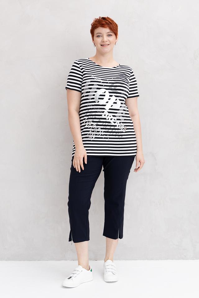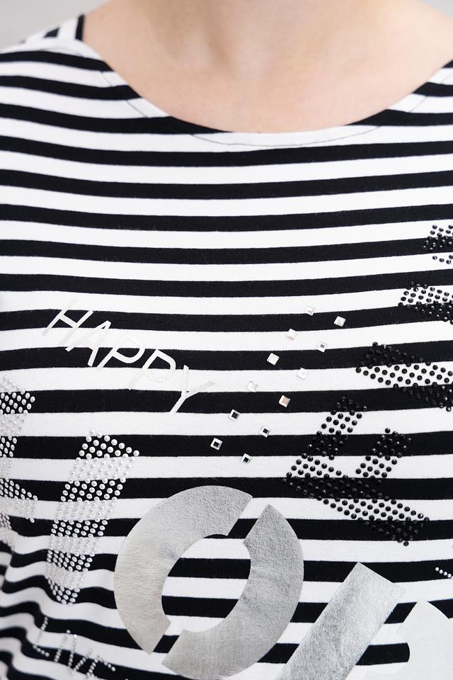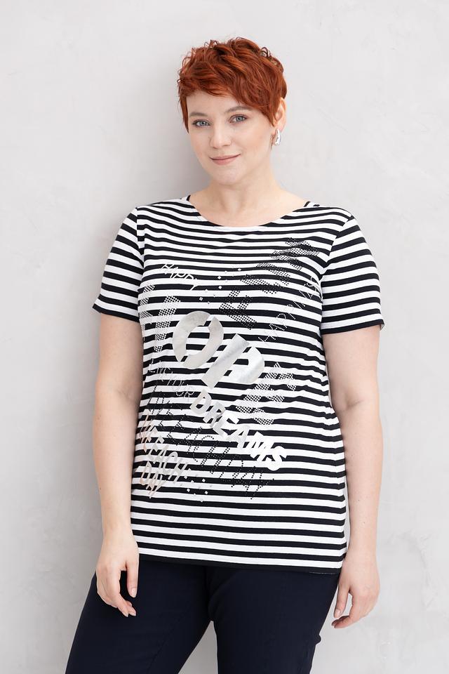 Женская футболка Doris Streich чёрно-белого цвета с ярким принтом и коротким рукавом. Изготовлена из мягкой вискозы с добавлением эластана для комфорта и хорошей посадки. Состав: вискоза 92%, эластан 8%