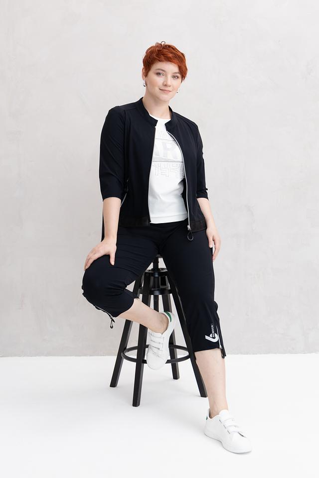 Жакет от бренда Doris Streich черного цвета – это стильная и удобная модель с застежкой на молнию и рукавом 3/4. Жакет имеет декоративные элементы и выполнен из качественного полиамида с добавлением эластана. Состав: полиамид 75%, эластан 25%