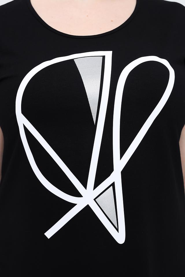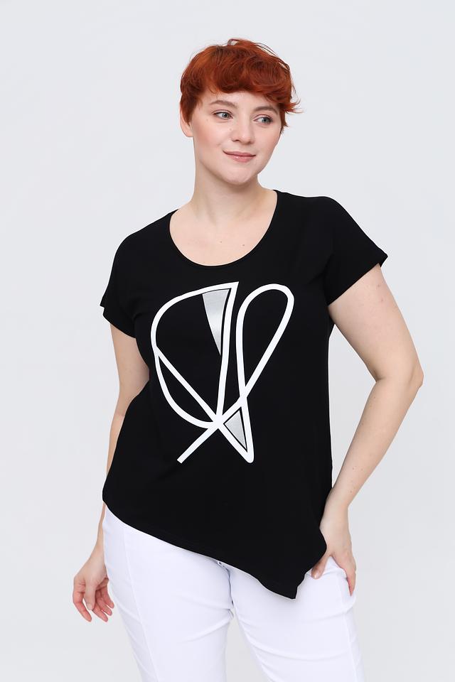 Чёрная футболка от Doris Streich с оригинальным белым принтом – стильное и комфортное решение для повседневного образа. Изготовлена из мягкой вискозы с добавлением эластана, обеспечивающего удобную посадку. Состав: вискоза 96%, эластан 4%