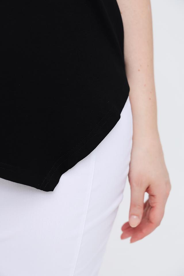Асимметричный подол придает футболке современный и стильный вид. Благодаря своему лаконичному дизайну, эта футболка легко сочетается с различными элементами одежды – от джинсов и брюк до юбок и шорт. Идеально подходит для создания повседневных образов.