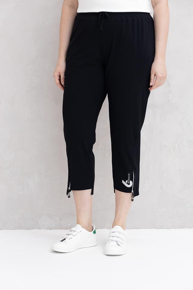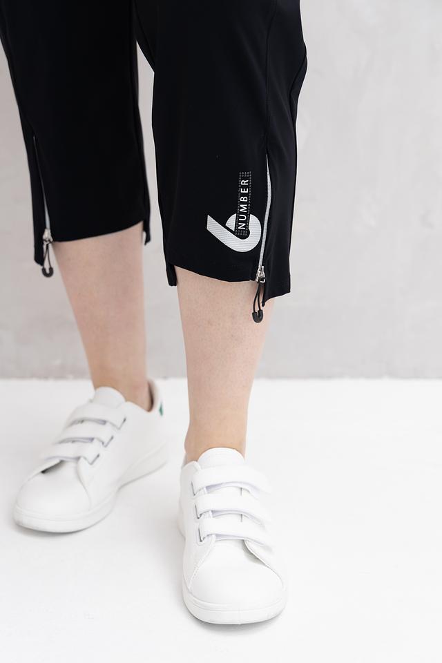 Декоративные молнии на штанинах добавляют брюкам современный акцент. Эластичный пояс с регулирующим шнурком обеспечивает надежную посадку по фигуре. Брюки идеально подойдут для создания повседневных образов, сочетаясь с различными видами топов и обуви.