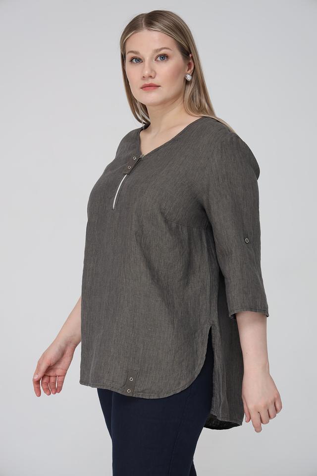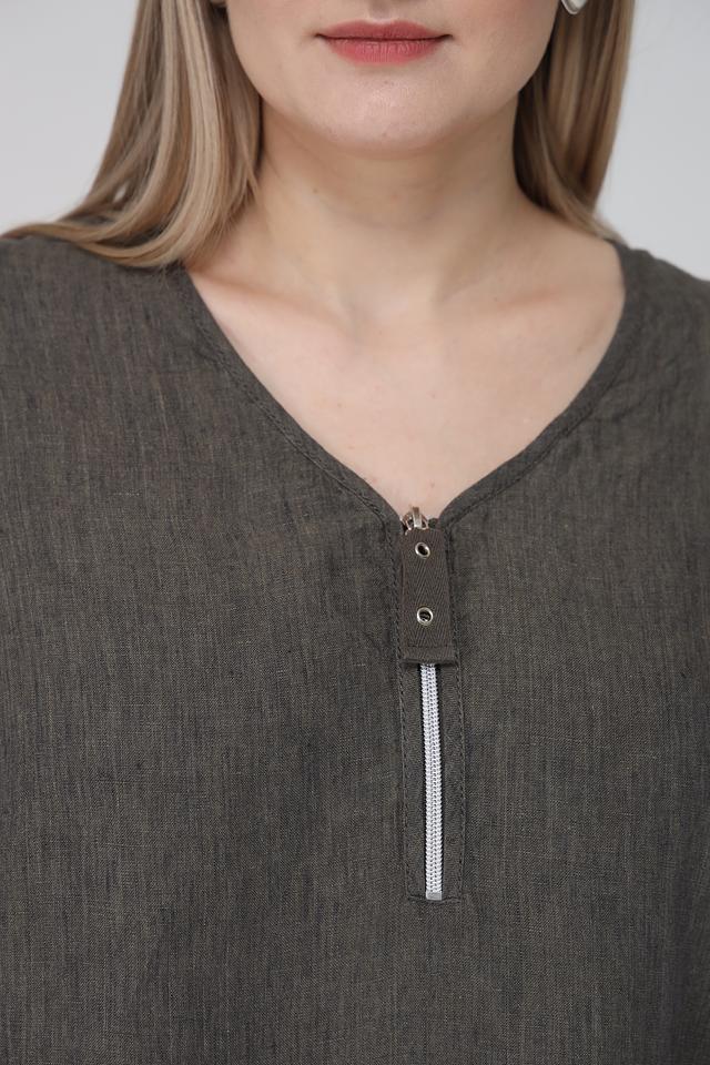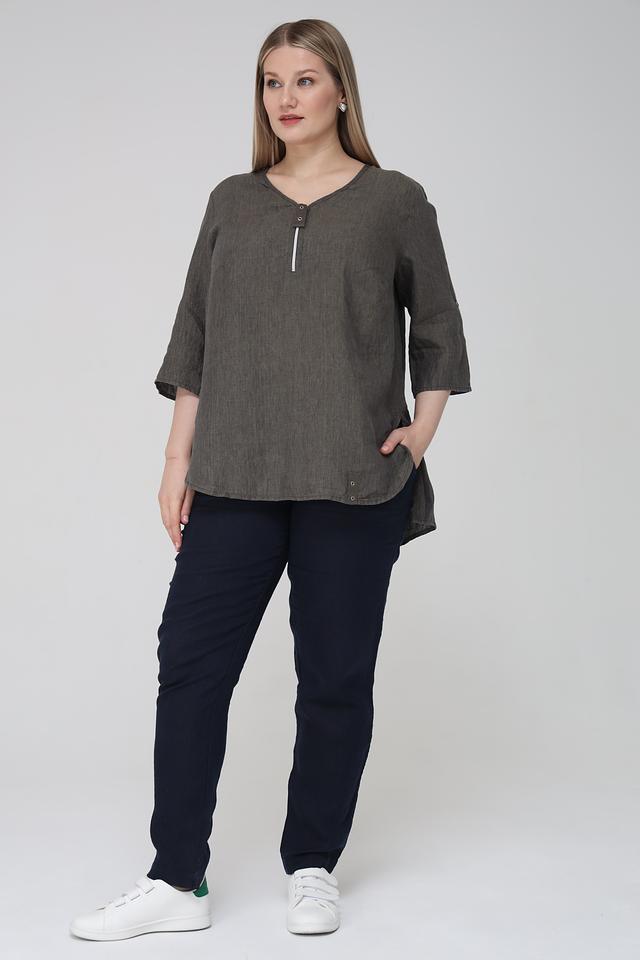 Благодаря своему универсальному цвету хаки, эта блуза легко сочетается с различными элементами одежды. Вы можете носить ее с джинсами, брюками, юбками или шортами, создавая разнообразные образы для повседневной жизни или особых случаев. Состав: 100% лен.