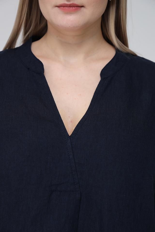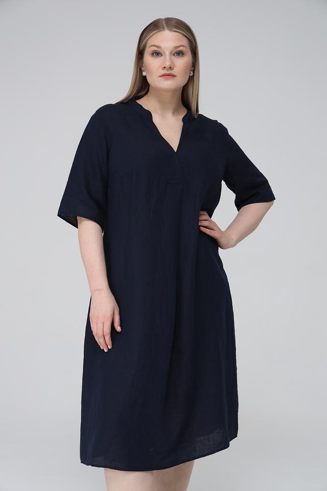 Тёмно-синее платье от Doris Streich выполнено из 100% льна. Это платье свободного кроя с V-образным вырезом и короткими рукавами станет отличным выбором для летнего гардероба. Состав: лен 100%