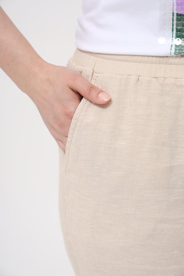 Укороченная длина делает эти брюки идеальными для создания лёгких и стильных образов. Нейтральный бежевый цвет легко сочетается с различными элементами гардероба, позволяя создавать разнообразные комплекты. Брюки прекрасно подойдут для прогулок, отдыха или повседневной носки.