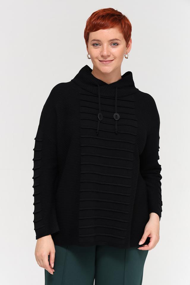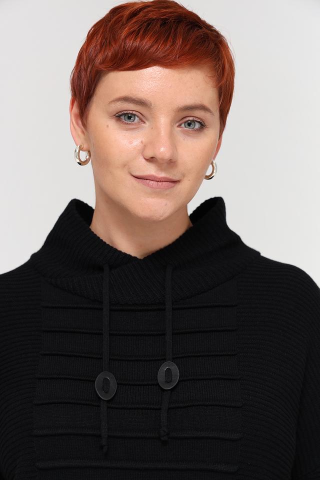Чёрный пуловер от Doris Streich – стильная модель с оригинальным дизайном и удобным кроем. Пуловер имеет текстурную вязку, декоративные шнурки и пуговицы, что придает ему особый шарм. Состав: вискоза 50%, полиакрил 50%