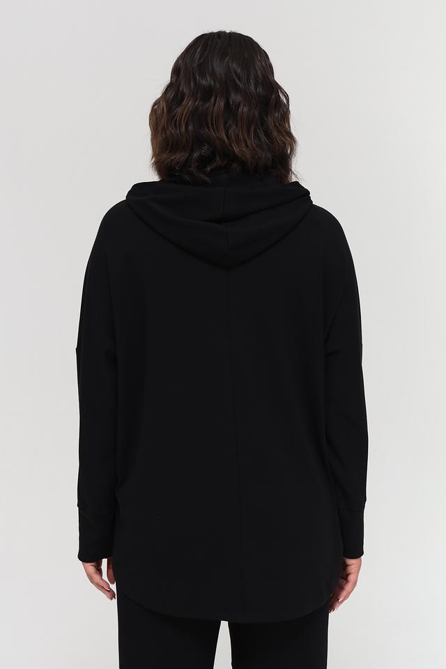 Пуловер имеет удобный капюшон, который защитит от ветра и непогоды. Свободный крой обеспечивает комфорт и свободу движений. Состав ткани – 49% хлопок, 49% модал и 2% эластан, что гарантирует мягкость, приятные тактильные ощущения и хорошую посадку по фигуре.