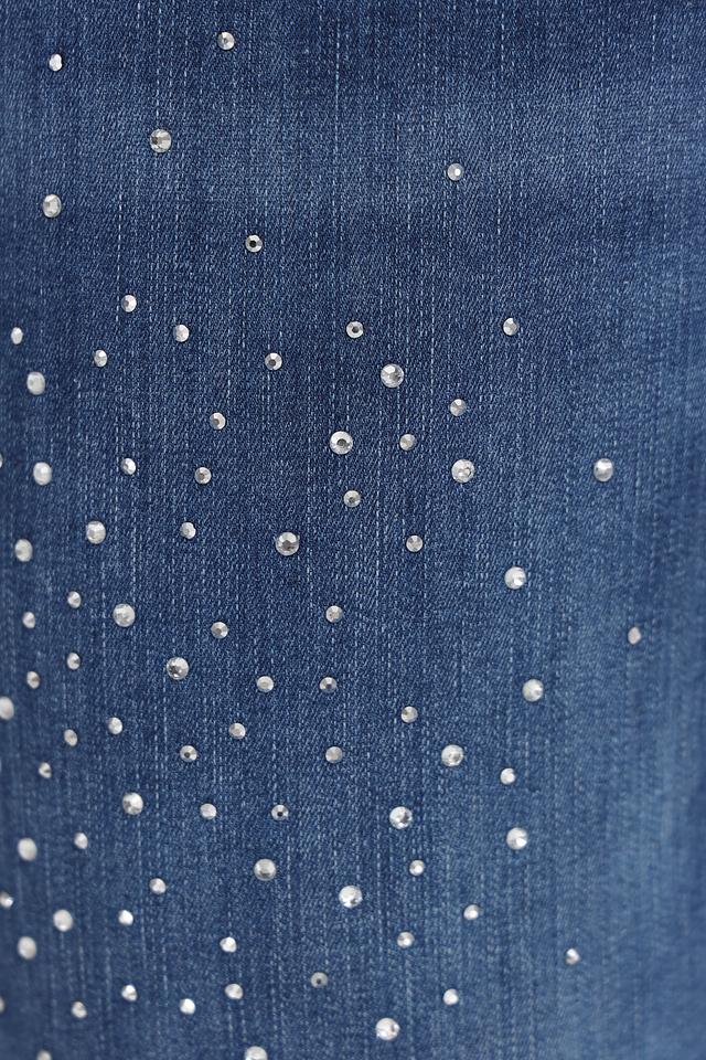 Представляем вашему вниманию стильные джинсы от бренда Doris Streich. Эта модель выполнена в классическом синем цвете и отличается оригинальным дизайном благодаря декоративной отделке из страз, расположенных на передней части брюк.