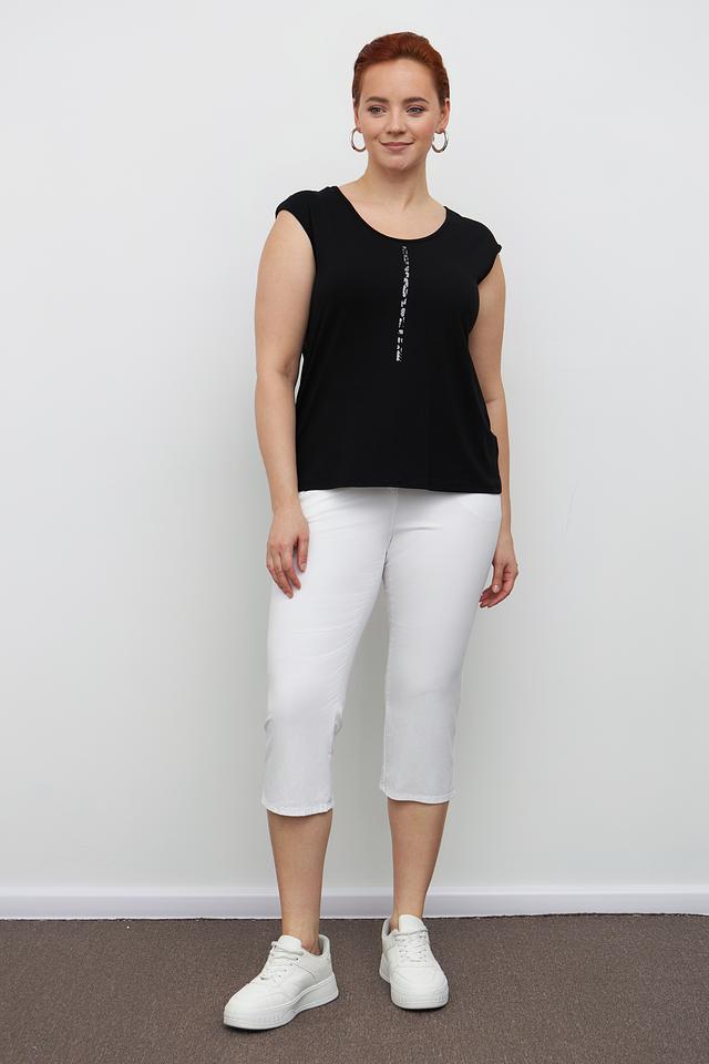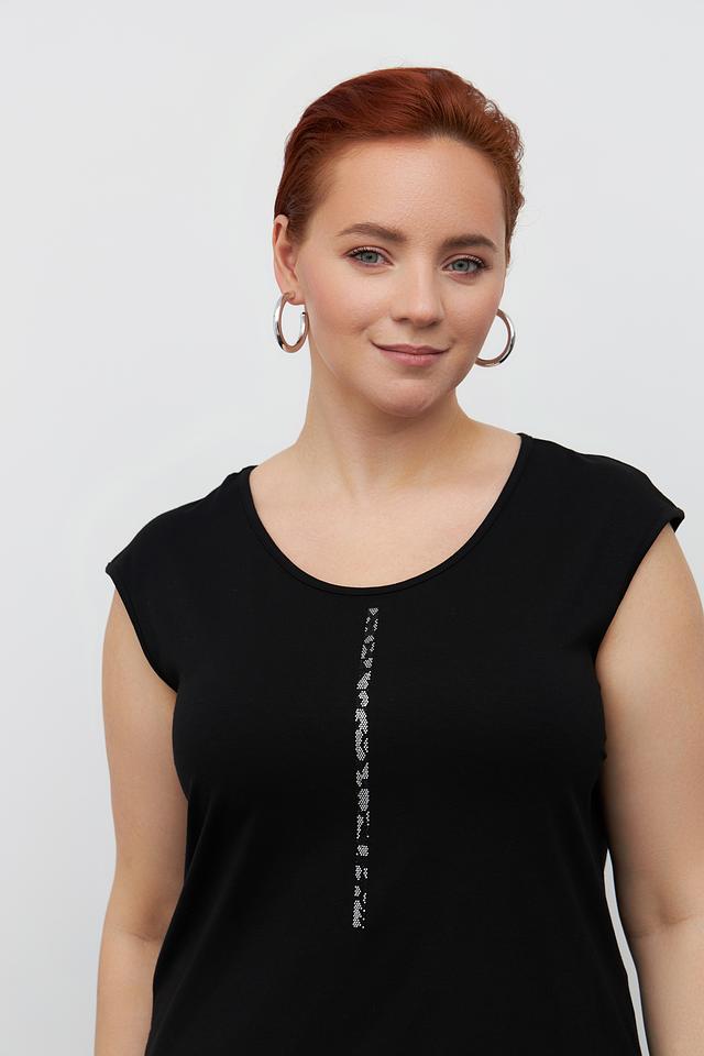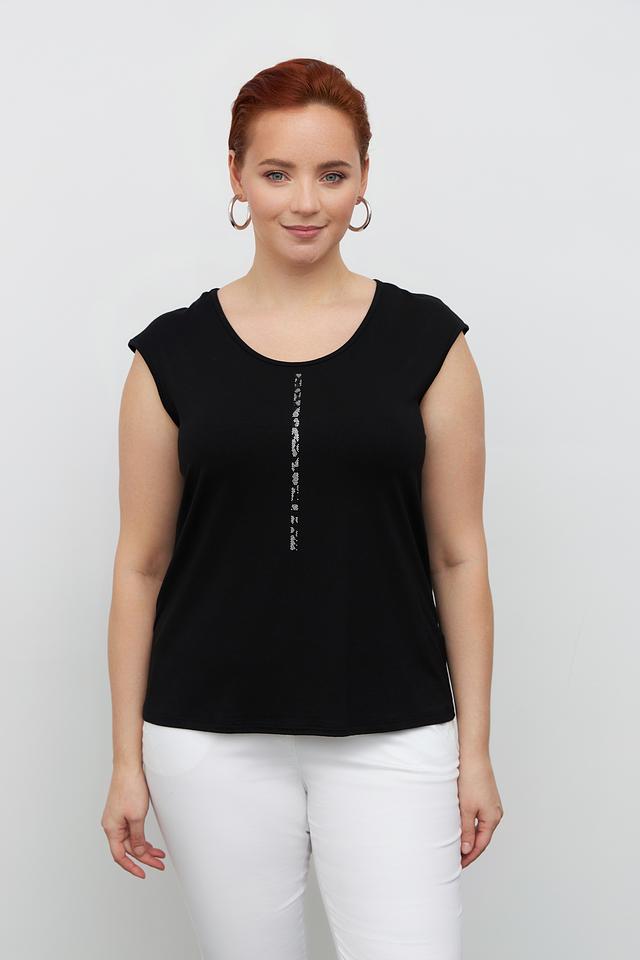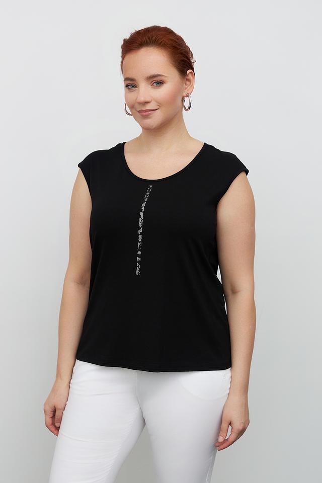 Чёрный топ от Doris Streich – это стильная и удобная модель с округлым вырезом и декоративной отделкой из страз. Изготовлен из мягкой вискозы с добавлением эластана для комфортной посадки. Состав: вискоза 94%, эластан 6%