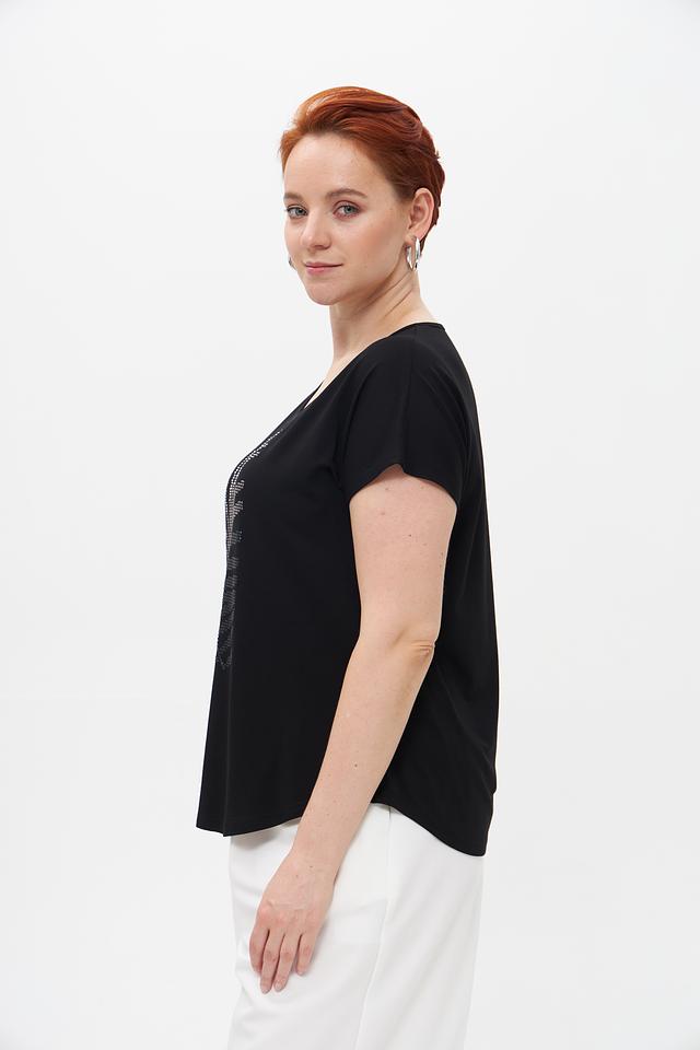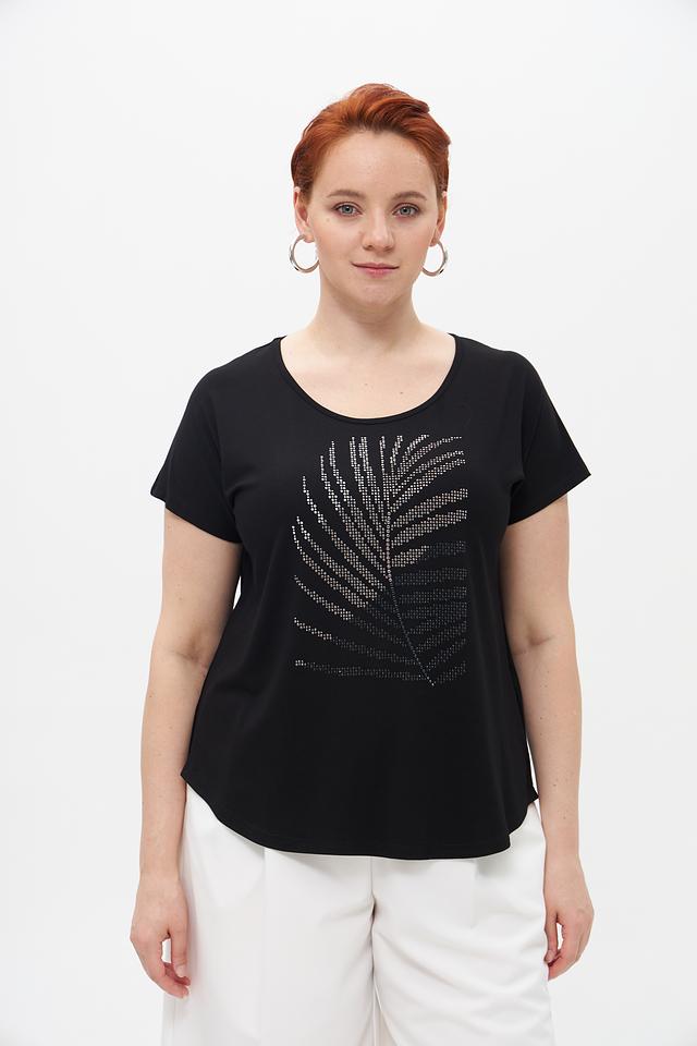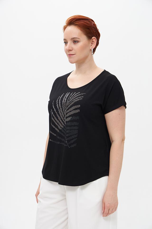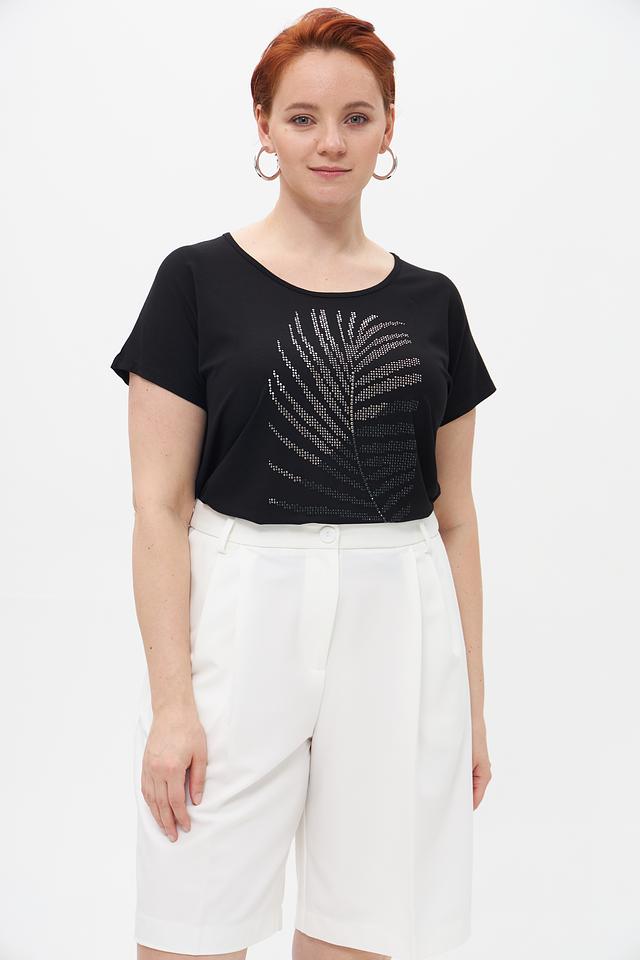 Чёрная футболка от Doris Streich, украшенная стразами в форме пальмового листа. Изготовлена из мягкой вискозы с добавлением эластана для комфортной посадки. Состав: вискоза 94%, эластан 6%