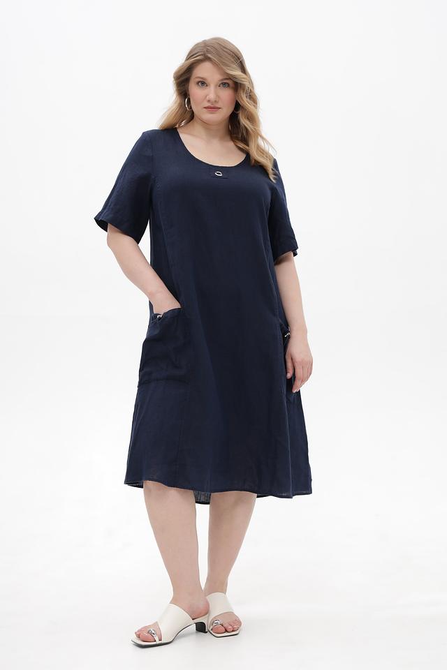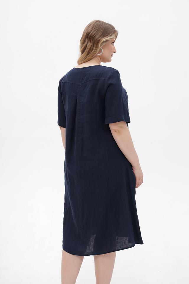 Тёмно-синее льняное платье от Doris Streich – это комфорт и стиль в одном изделии. Платье свободного кроя с короткими рукавами и боковыми карманами идеально подходит для повседневной носки. Изготовлено из 100% натурального льна. Состав: лен 100%