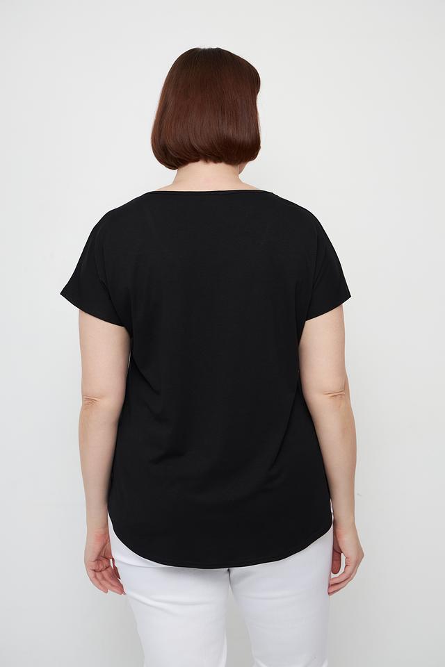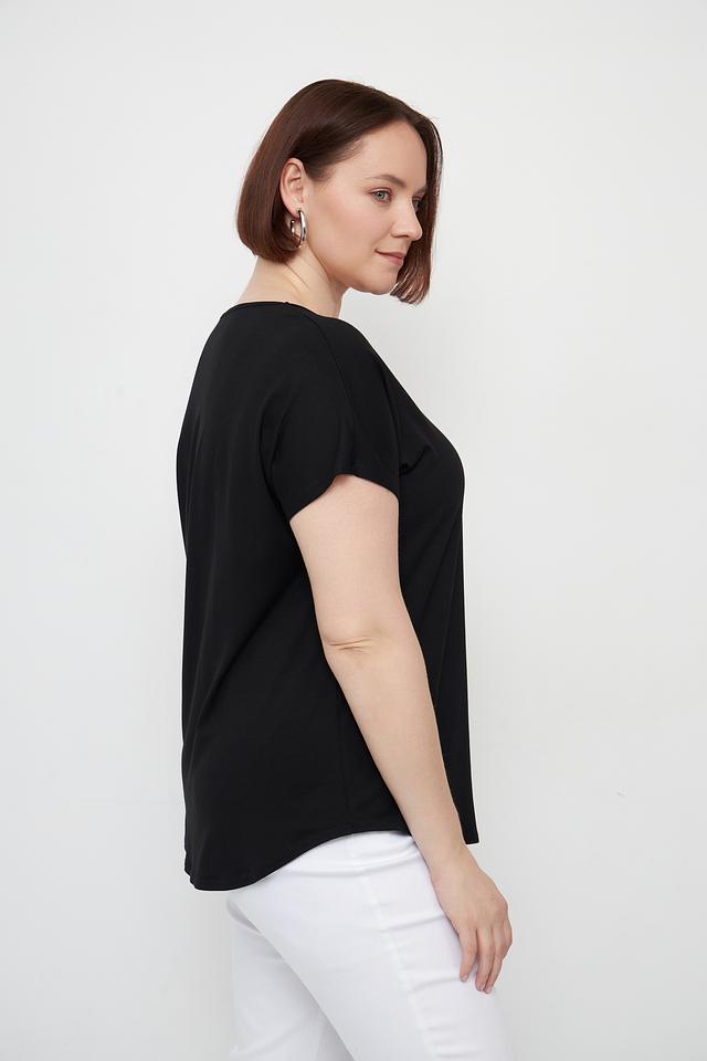 Состав ткани: 94% вискоза, 6% эластан. Эта комбинация материалов делает футболку комфортной в носке и устойчивой к деформации. Футболка идеально сочетается с джинсами, брюками или юбками, создавая стильный и современный образ.