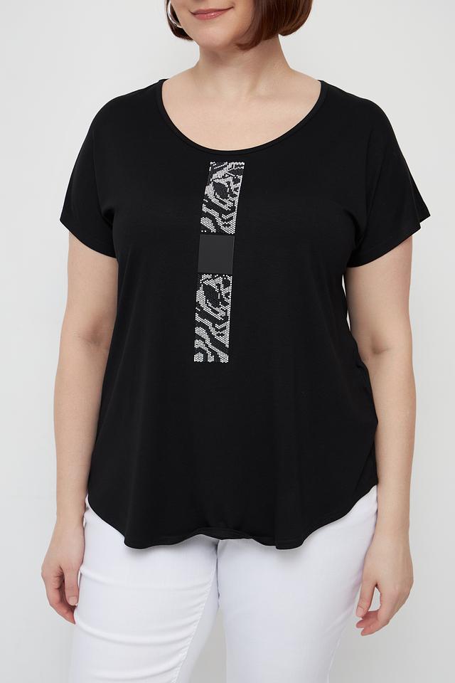 Чёрная футболка от Doris Streich с оригинальным декором из страз. Модель выполнена из мягкой вискозы с добавлением эластана, обеспечивающего комфортную посадку. Стильный и удобный вариант для повседневного образа. Состав: вискоза 94%, эластан 6%