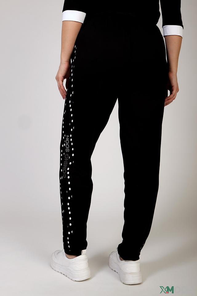 Чёрные брюки от Doris Streich с оригинальным принтом в белый горошек — стильное и комфортное решение для повседневного образа. Модель выполнена из мягкой ткани с добавлением эластана, обеспечивающего свободу движений. Состав: вискоза 70%, полиэстер 25%, эластан 5%