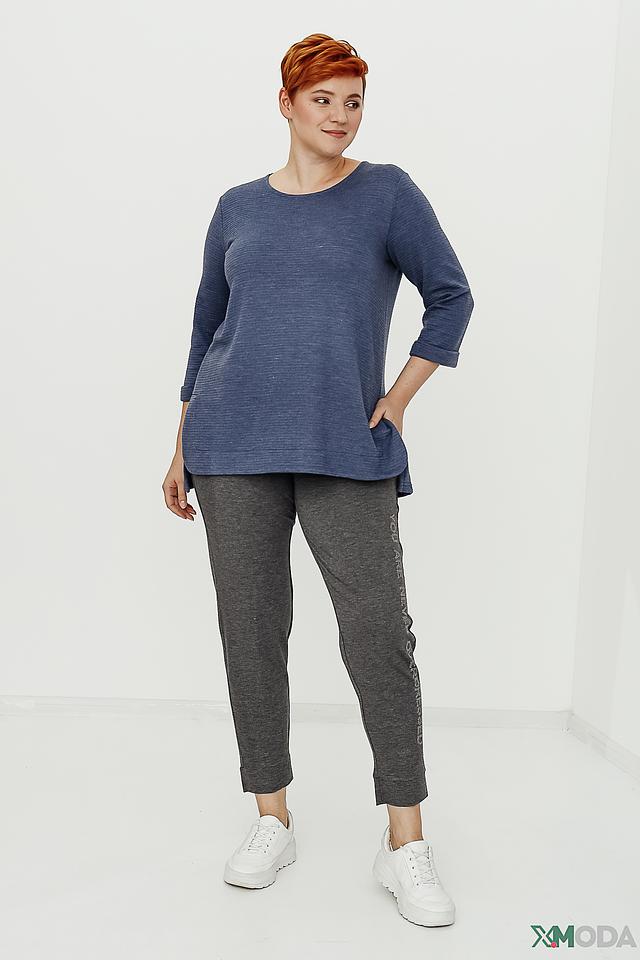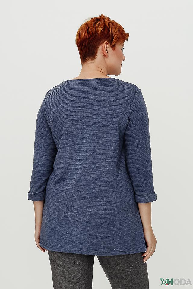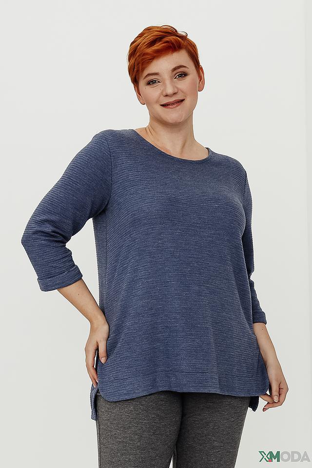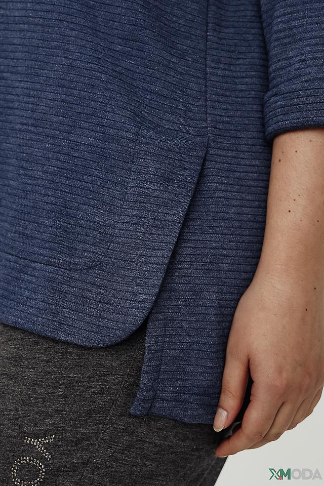 Синий пуловер от Doris Streich с рукавом 3/4 и текстурной вязкой. Модель свободного кроя с округлым вырезом горловины и асимметричным низом. Идеально дополнит повседневный образ. Состав: полиэстер 63%, вискоза 34%, эластан 3%