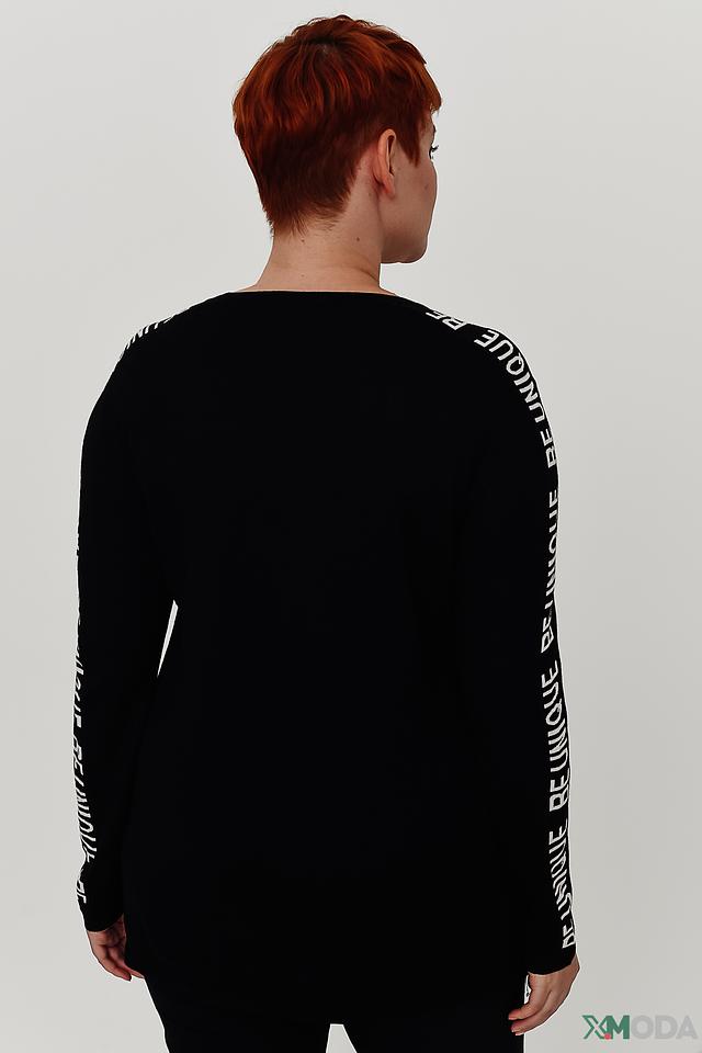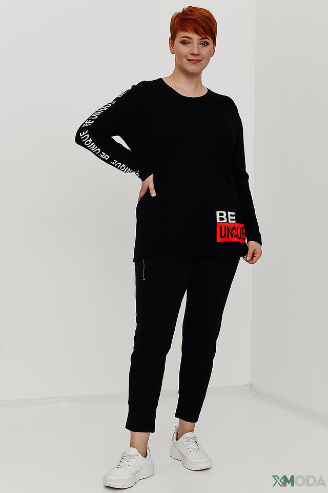 Пуловер имеет свободный крой, который не сковывает движений и позволяет создать расслабленный силуэт. Особенностью модели является яркая надпись "BE UNIQUE" на лицевой стороне и вдоль рукавов, выполненная в белом и красном цветах, что добавляет образу индивидуальности.