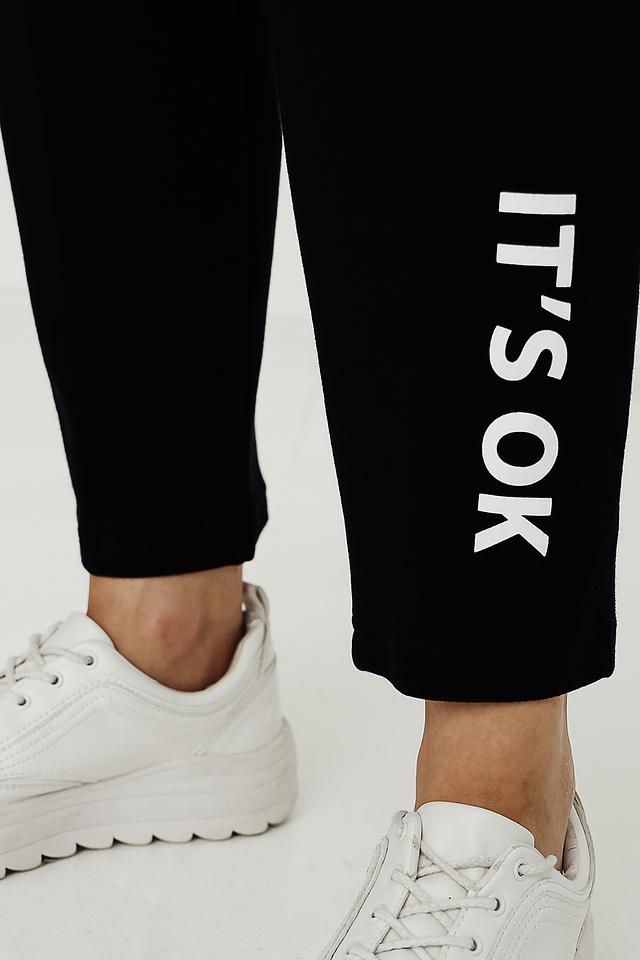 Особенностью данной модели является стильная надпись "IT'S OK" на левой штанине, выполненная в белом цвете. Брюки имеют удобный пояс на резинке и манжеты внизу штанин. Они идеально подойдут для занятий спортом, прогулок или для создания повседневного образа в стиле casual.