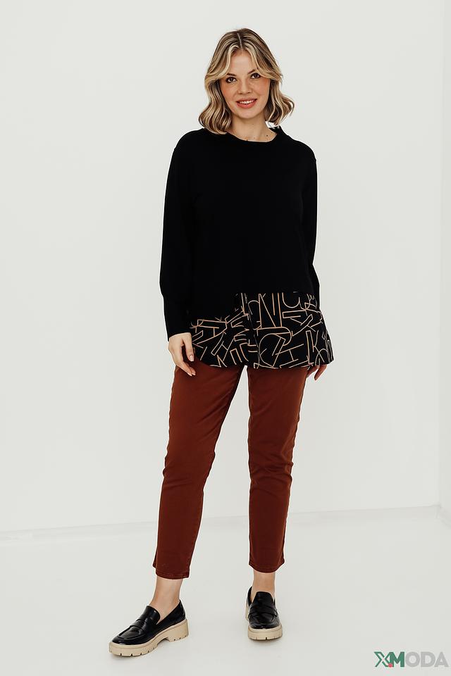 Чёрная блуза от Doris Streich с оригинальным белым принтом на подоле. Модель выполнена из мягкой вискозы, обеспечивающей комфорт в носке. Стильное сочетание лаконичного верха и декоративного низа. Состав: вискоза 100%