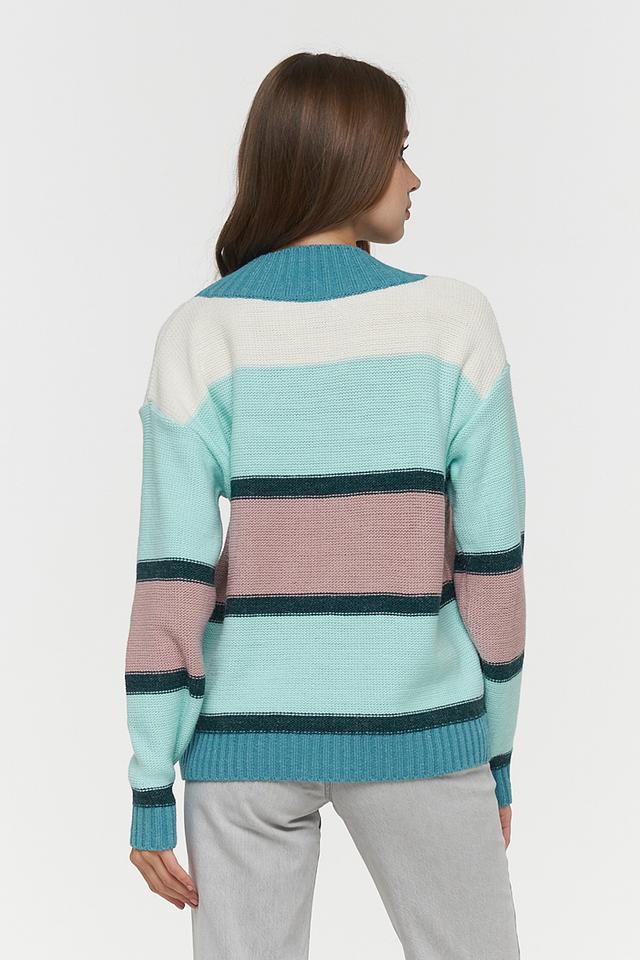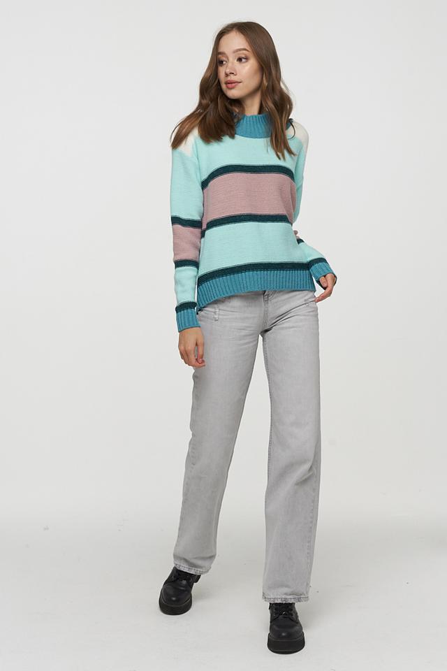 Женский джемпер BE YOU мятного цвета, выполненный в полоску, станет ярким акцентом вашего образа. Модель имеет прямой крой и длинные рукава.