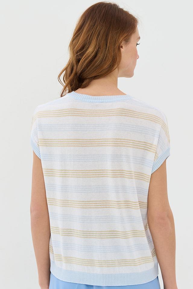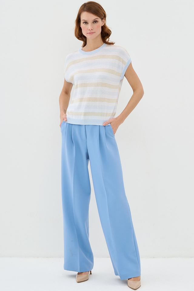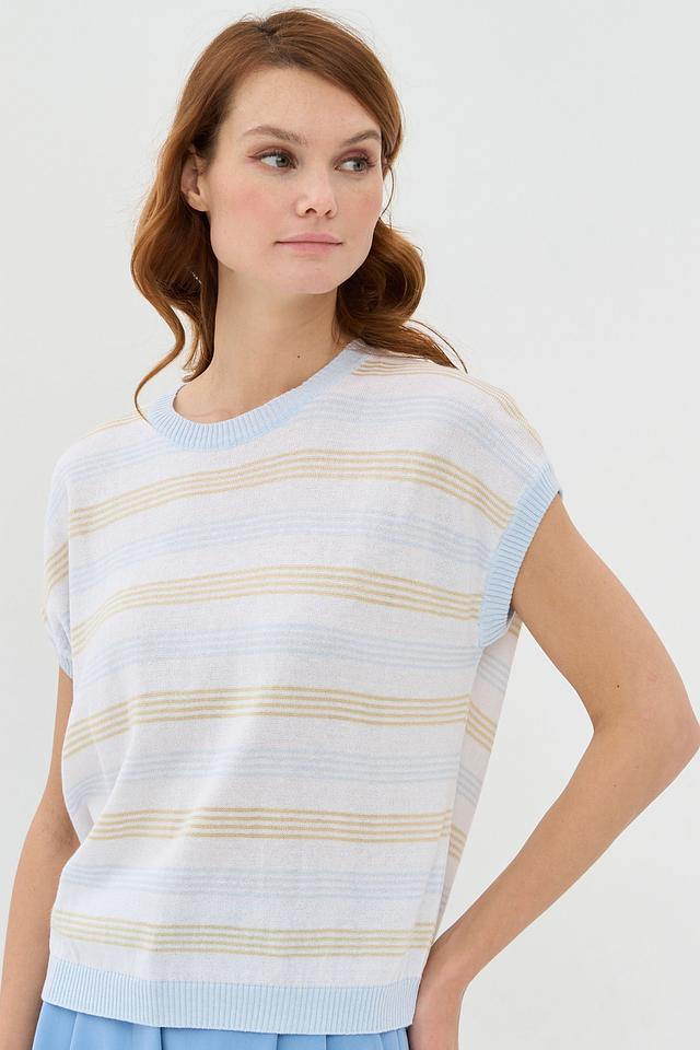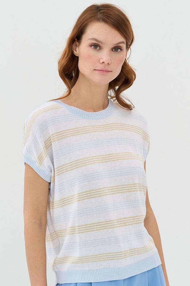 Женский джемпер BE YOU голубого цвета с полосатым рисунком станет отличным дополнением к вашему гардеробу. Изготовлен из мягкого хлопка с добавлением пан для комфорта и сохранения формы. Идеально сочетается с брюками и юбками. Состав: хлопок 50%, пан 50%