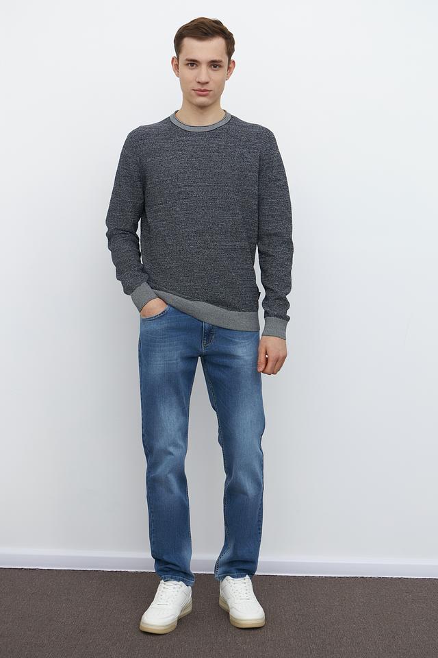 Мужской джемпер от Bugatti выполнен в сером меланжевом цвете. Модель имеет классический крой с круглым вырезом горловины и длинными рукавами.