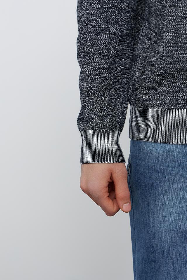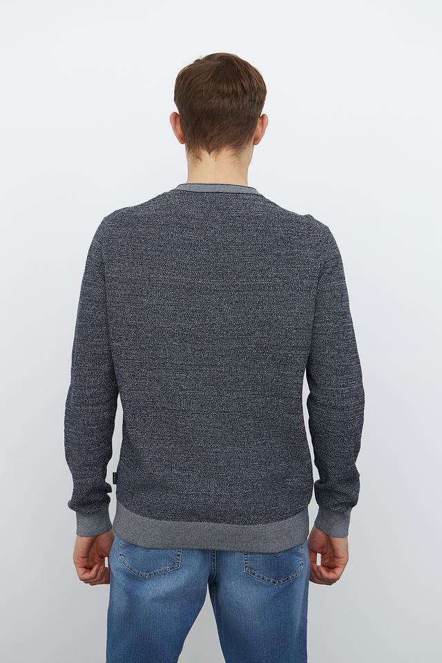 Мужской джемпер Bugatti серого меланжа с контрастной серой отделкой горловины и манжет. Изготовлен из 100% хлопка, обеспечивающего комфорт и воздухопроницаемость. Состав: хлопок 100%