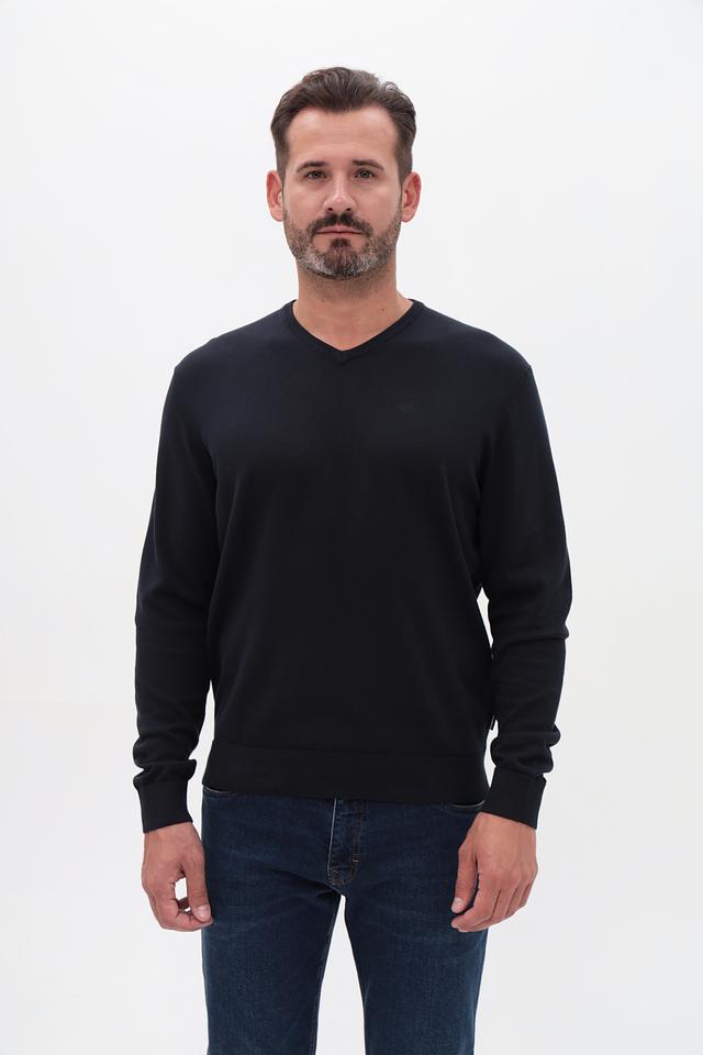 Чёрный джемпер Bugatti с V-образным вырезом – это стильная и комфортная модель на каждый день. Изготовлен из 100% хлопка, обеспечивающего мягкость и приятные ощущения при носке. Классический крой делает этот джемпер универсальным элементом гардероба. Состав: хлопок 100%