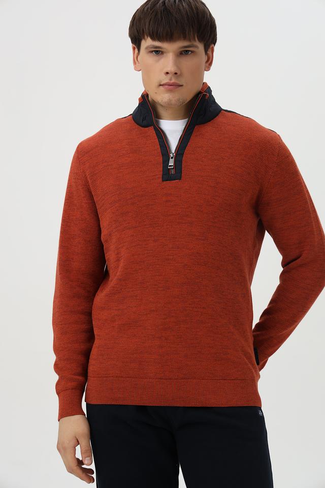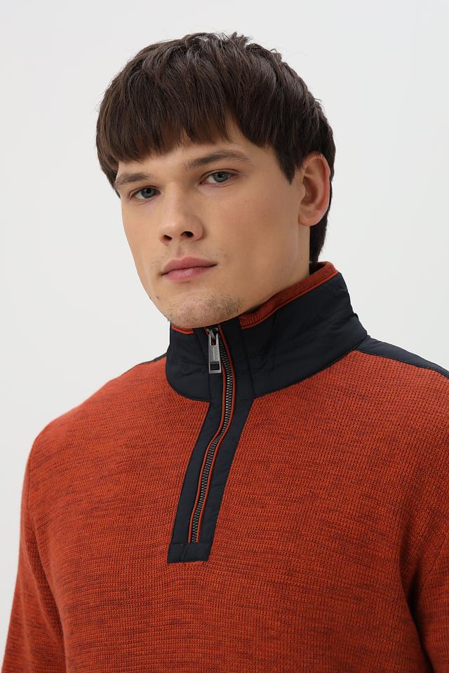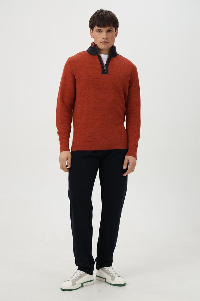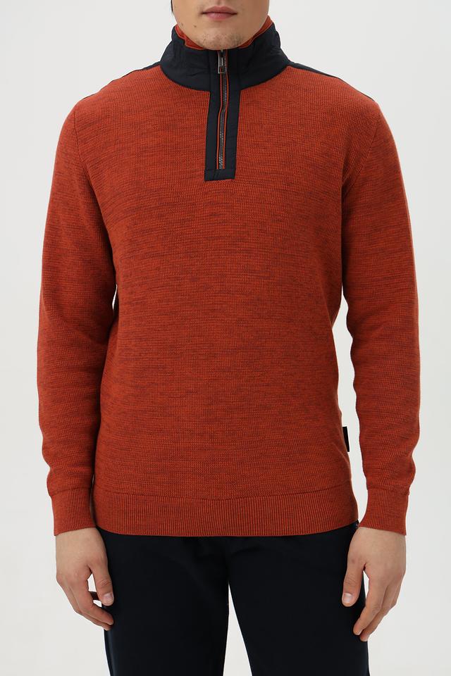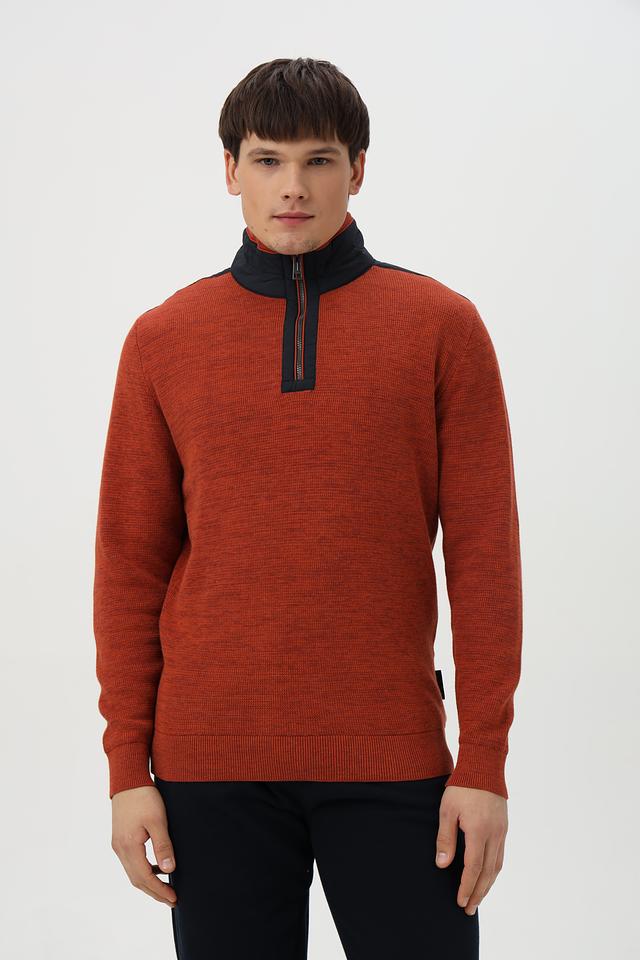 Мужской джемпер от Casa Moda выполнен из высококачественного хлопка терракотового цвета. Модель имеет удобный воротник-стойку и короткую молнию, добавляющую динамичности образу.