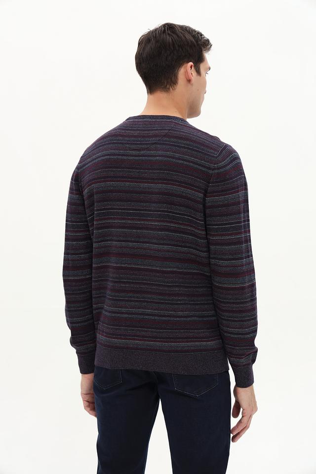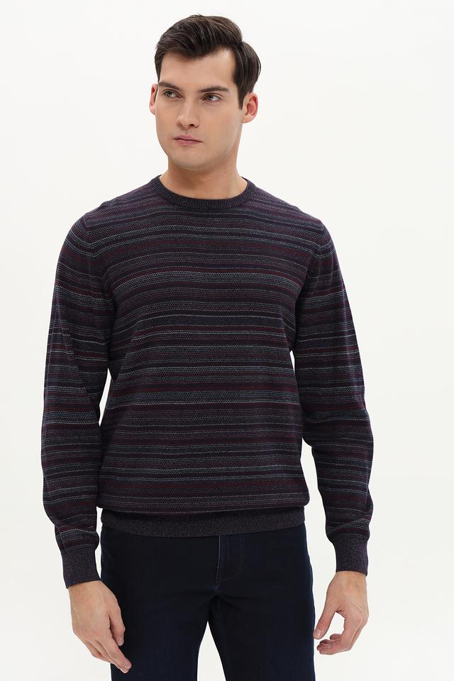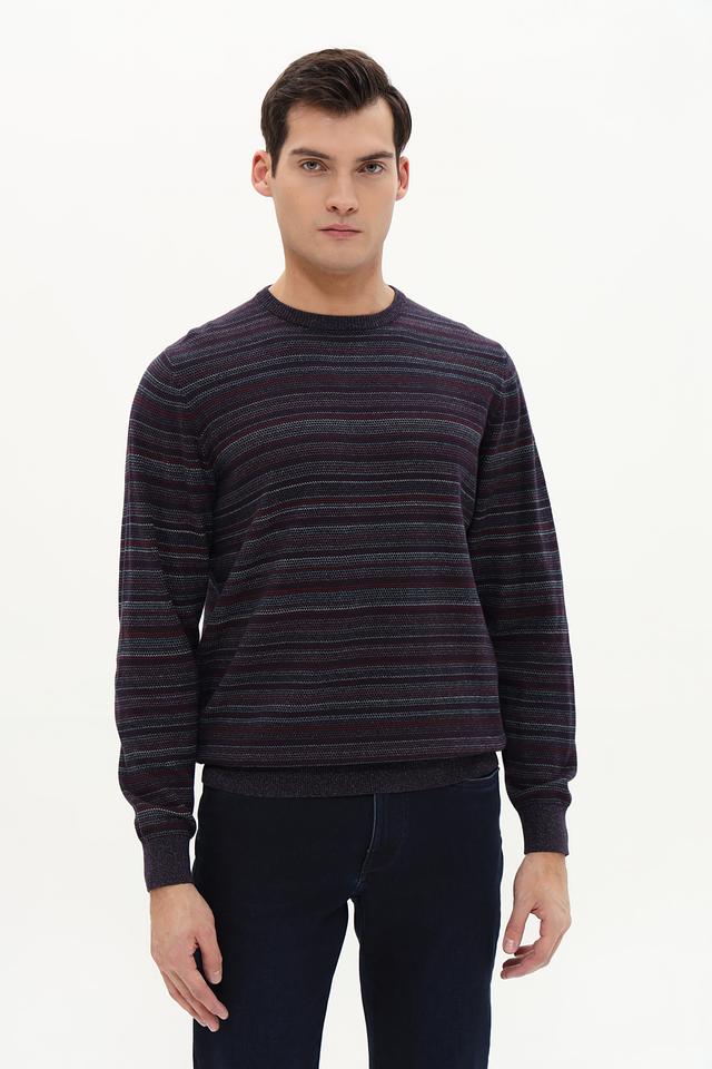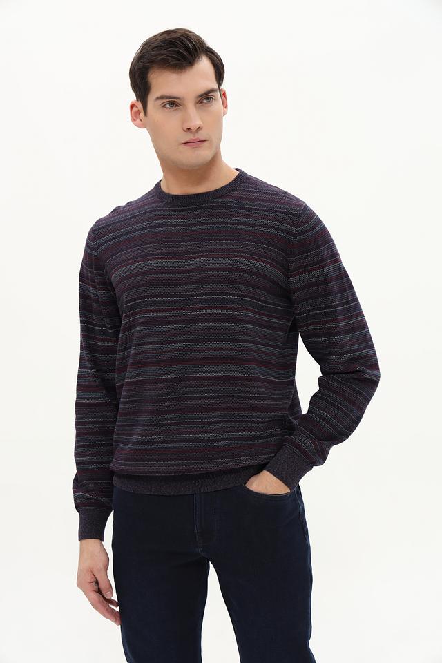 Представляем вашему вниманию стильный мужской джемпер от бренда Casa Moda. Эта модель выполнена в бордовом цвете с горизонтальными полосами, что придает ей современный и динамичный вид.