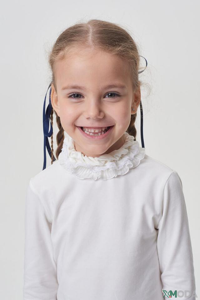 Особенностью модели является нежный воротник-рюш, который добавляет образу девочки изысканности и романтичности. Джемпер имеет длинные рукава, обеспечивающие тепло и комфорт в прохладную погоду.