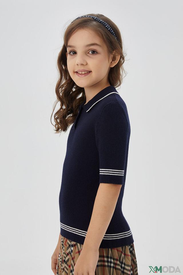Тёмно-синий пуловер Choupette с воротником-поло и короткими рукавами – стильная и удобная модель для девочки. Изготовлен из мягкого трикотажа с добавлением вискозы, полиэстера и полиамида. Состав: вискоза 50%, полиэстер 30%, полиамид 20%