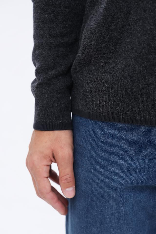 Джемпер изготовлен из премиального сочетания материалов: 47% шерсть мериноса, 38% вискоза, 10% полиамид и 5% кашемир. Шерсть мериноса обеспечивает мягкость, тепло и комфорт, вискоза придает изделию приятную текстуру и драпируемость, а добавление кашемира делает джемпер особенно роскошным.