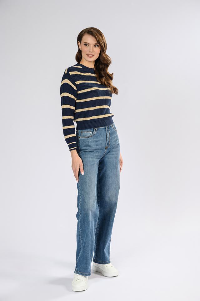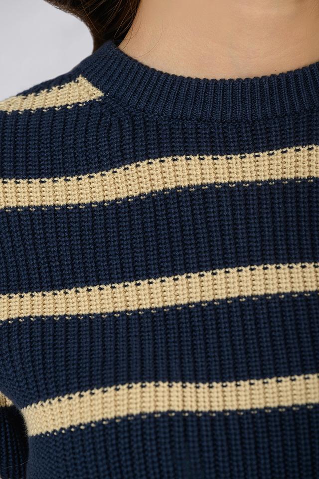 Женский джемпер i Blues navy цвета с полосатым узором станет отличным дополнением к вашему гардеробу. Модель выполнена из мягкого хлопка, обеспечивающего комфорт в носке, и имеет классический крой. Состав: хлопок 100%