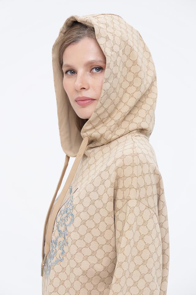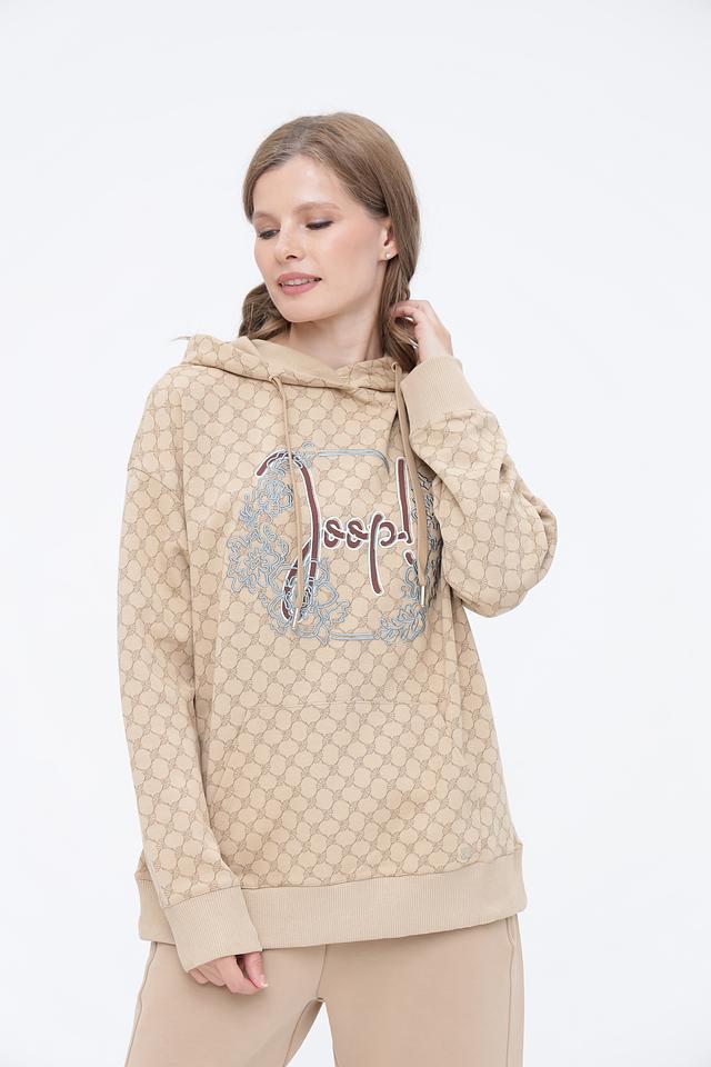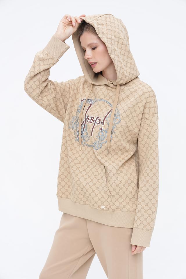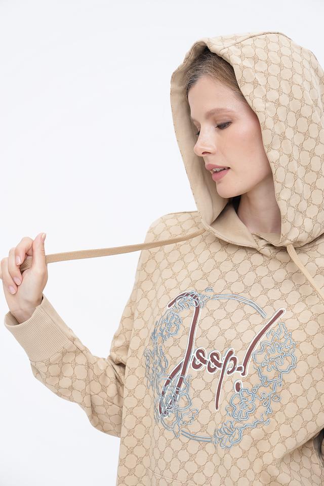 Бежевый джемпер от Joop! с капюшоном и оригинальным логотипом – стильное и комфортное решение для повседневного образа. Модель выполнена из мягкого хлопка с добавлением полиэстера, что обеспечивает удобство в носке и долговечность. Состав: хлопок 75%, полиэстер 25%