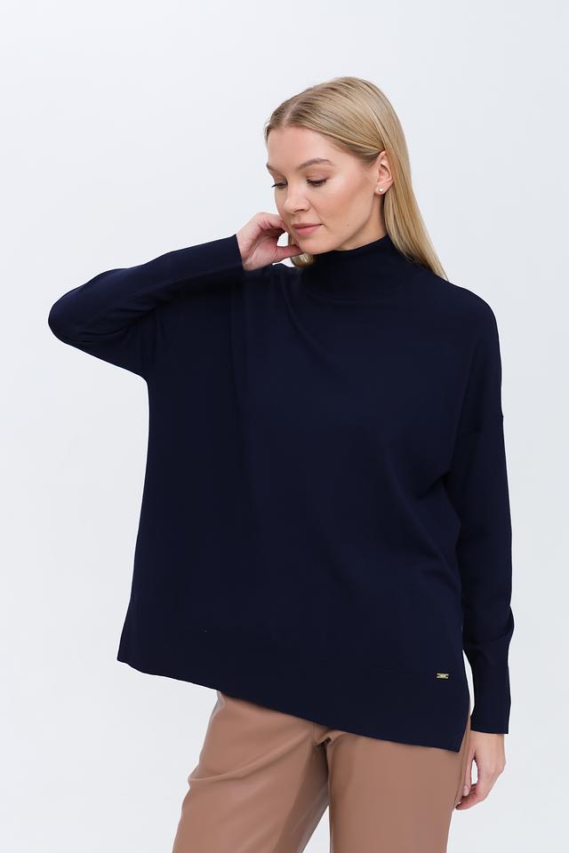 Джемпер Kaos темно-синего цвета с вырезом на спине – стильное и комфортное решение для создания повседневного образа. Модель выполнена из мягкого трикотажа с добавлением вискозы, что обеспечивает приятные ощущения при носке. Состав: вискоза 72%, полиэстер 28%