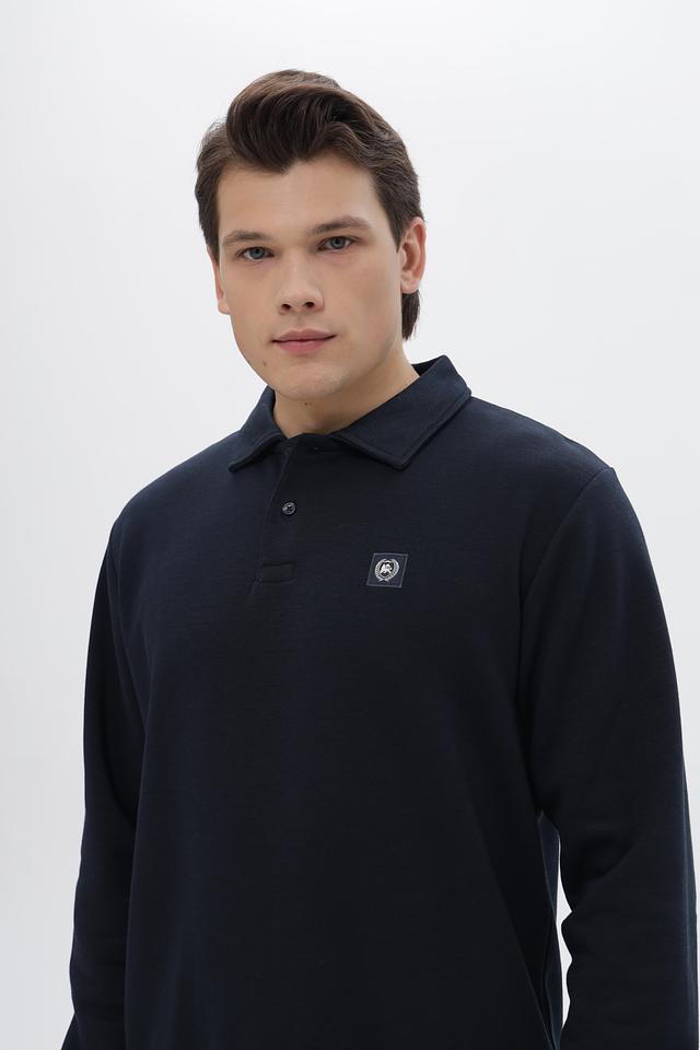 Тёмно-синий джемпер от Lerros с воротником-поло и длинными рукавами. Изготовлен из мягкого и приятного к телу сочетания хлопка и полиэстера, обеспечивающего комфорт и практичность. Состав: полиэстер 50%, хлопок 50%