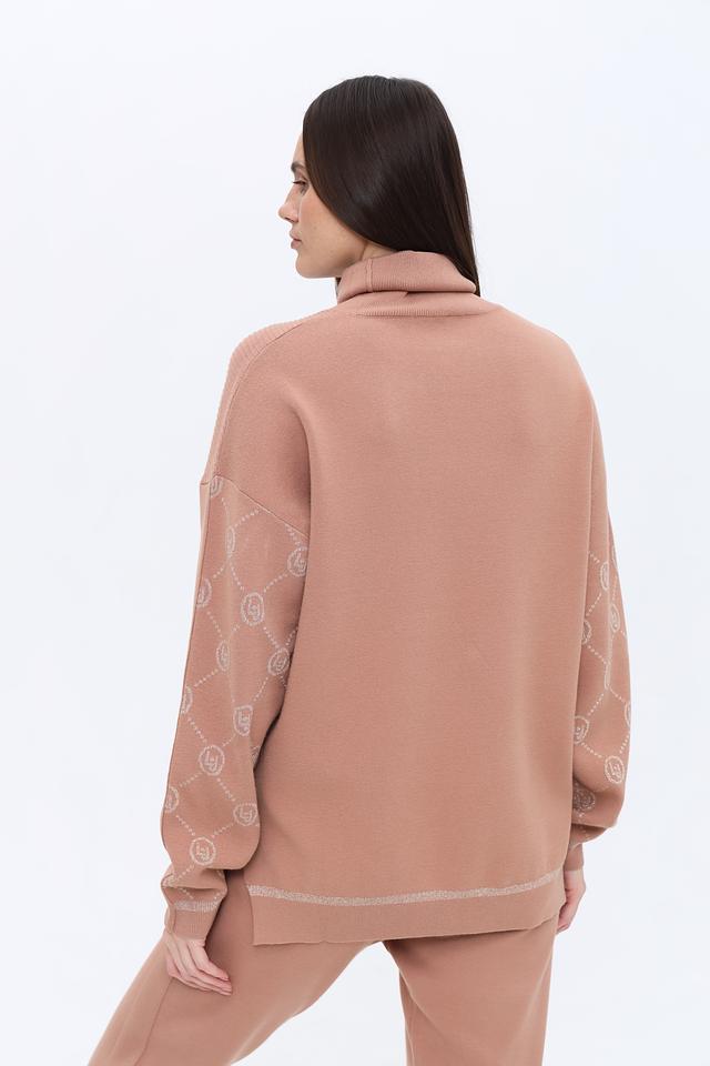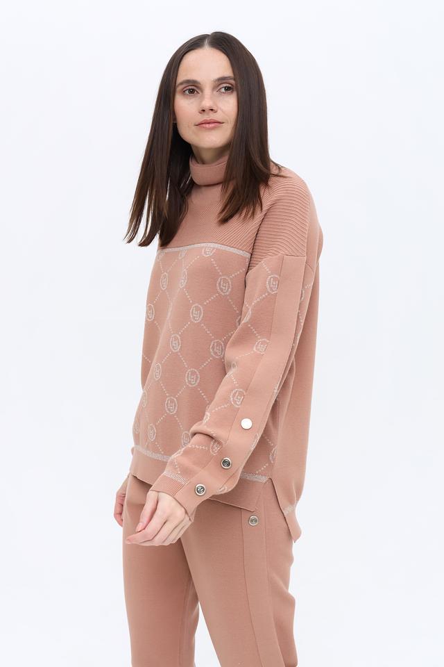 Женский джемпер Liu-Jo бежевого цвета с оригинальным узором в клетку и высоким горлом. Модель выполнена из мягкого трикотажа с добавлением вискозы, полиэстера и полиамида, что обеспечивает комфорт и удобство в носке. Состав: вискоза 53%, полиэстер 32%, полиамид 15%