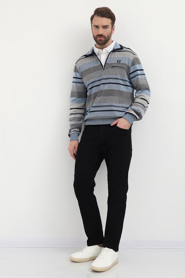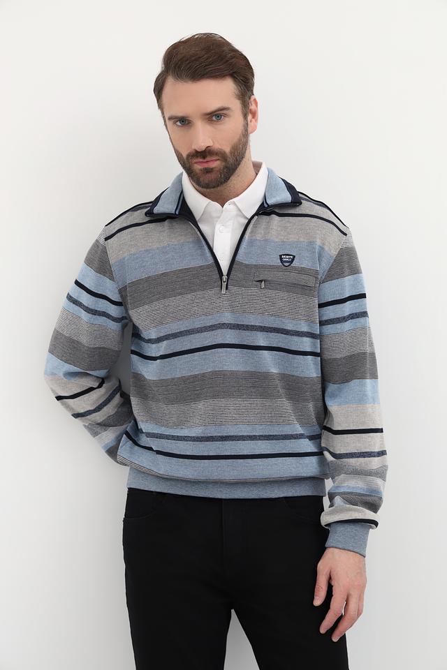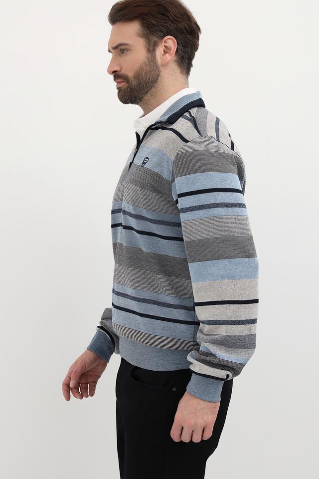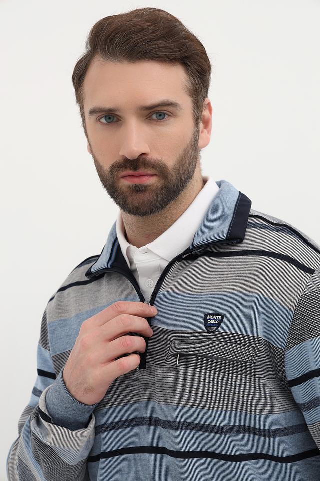 Мужской джемпер Monte Carlo голубо-серого цвета с полосатым узором и застёжкой на молнии. Изготовлен из 100% хлопка, обеспечивающего комфорт и удобство в носке. Отличный выбор для создания стильного повседневного образа. Состав: хлопок 100%