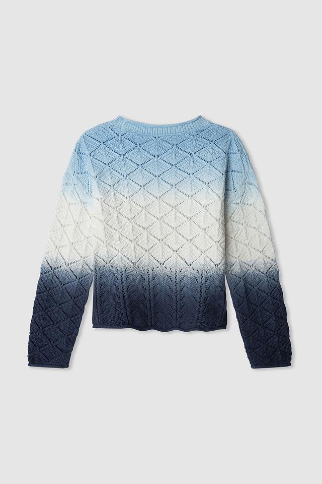 Этот очаровательный свитер от Pepe Jeans London станет прекрасным дополнением к гардеробу вашей девочки. Модель выполнена в нежном голубом цвете с плавным градиентным переходом к тёмно-синему.