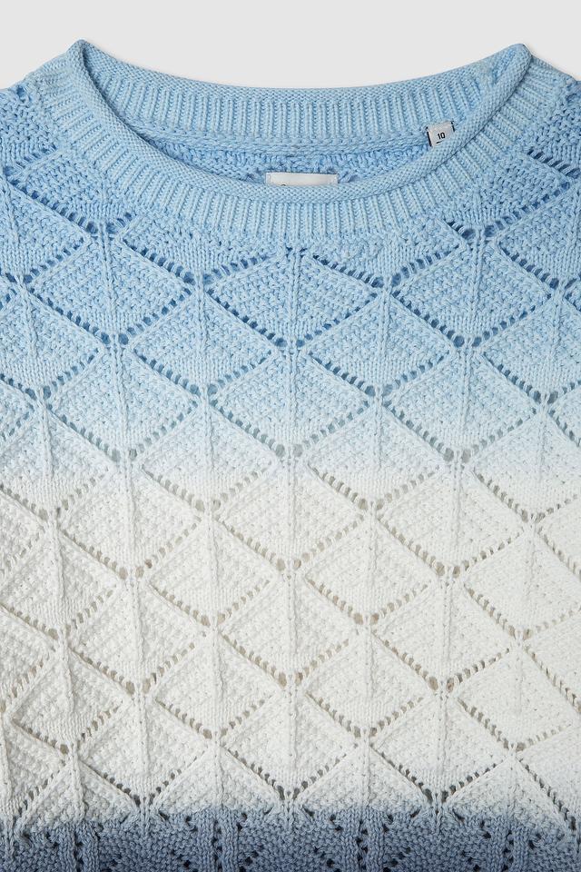 Джемпер Pepe Jeans London голубого цвета с эффектным градиентным переходом и текстурным узором. Уютный и стильный свитер для юных модниц, выполненный из мягкой вискозы с добавлением эластана. Состав: вискоза 90%, эластан 10%