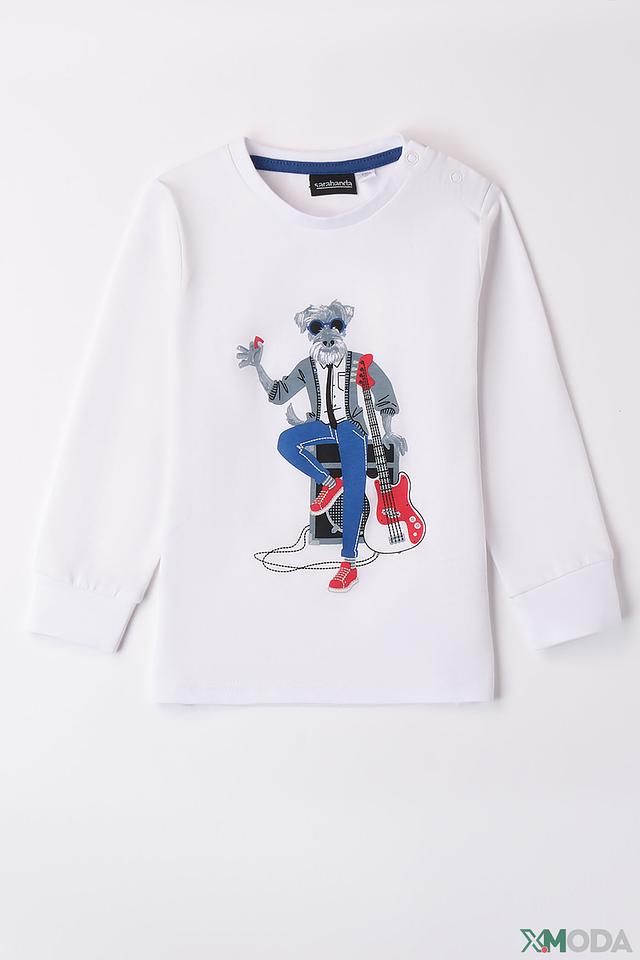Белый джемпер от Sarabanda с ярким принтом "Рокер" из 100% хлопка. Удобный крой и мягкий материал обеспечивают комфорт для вашего ребёнка. Состав: хлопок 100%