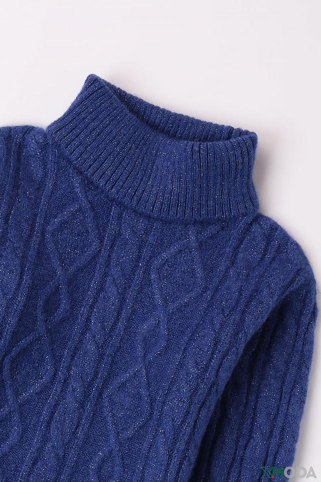 Джемпер имеет удобный высокий воротник, который защитит шею от холода. Изделие выполнено из сочетания акрила, полиэстера, шерсти, эластана и металлизированного волокна, что обеспечивает мягкость, тепло и небольшой блеск.