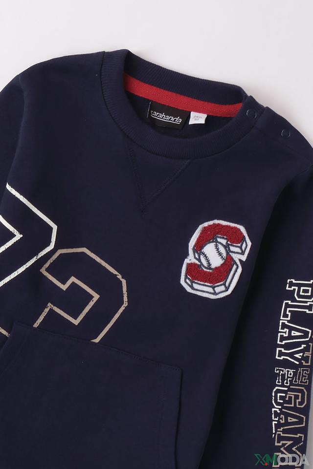 Джемпер от Sarabanda тёмно-синего цвета с ярким принтом в виде бейсбольного мяча и надписью "PLAY THE GAME". Удобный крой и мягкий хлопок обеспечат комфорт вашему ребёнку. Состав: хлопок 100%