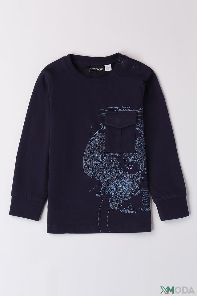 Джемпер от Sarabanda тёмно-синего цвета с оригинальным принтом в виде карты мира станет отличным дополнением к детскому гардеробу. Изготовлен из мягкого и приятного к телу хлопка, обеспечивая комфорт в течение дня. Состав: хлопок 100%