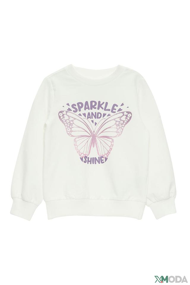 - Яркий дизайн: Украшен привлекательным принтом в виде сияющей бабочки с надписью "SPARKLE AND SHINE", который придает образу волшебства и уникальности.
