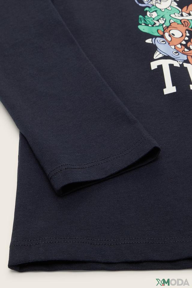 Детский лонгслив Tom Tailor тёмно-синего цвета с ярким принтом "Athletes Team". Удобный крой и 100% хлопковая ткань обеспечивают комфорт в течение дня. Отличный выбор для активных ребят! Состав: хлопок 100%
