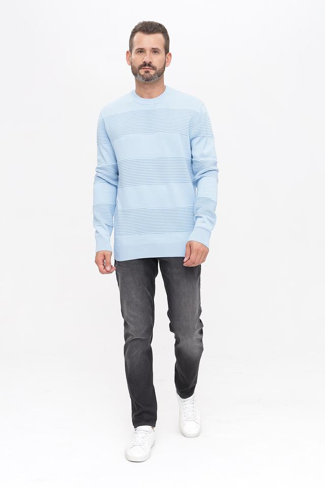 Этот стильный джемпер от Tom Tailor denim выполнен в приятном голубом цвете и украшен выразительным полосатым узором. Модель имеет классический крой с круглым вырезом горловины и длинными рукавами, что делает его универсальным для различных образов.