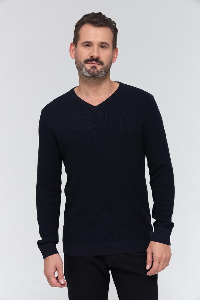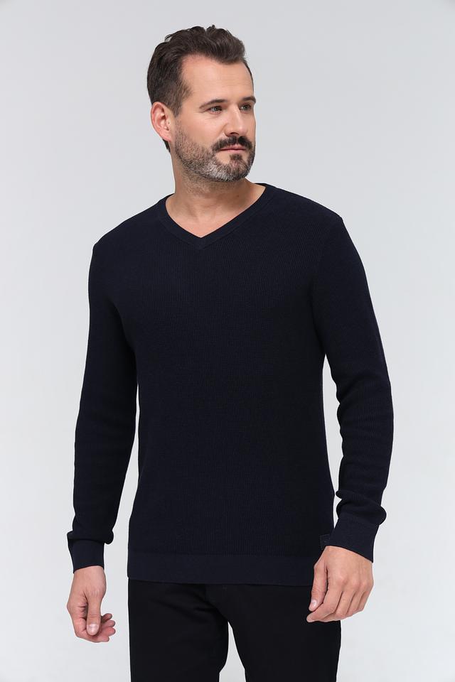 Мужской джемпер Tom Tailor темно-синего цвета с V-образным вырезом. Изготовлен из 100% хлопка, обеспечивающего комфорт и воздухопроницаемость. Состав: хлопок 100%