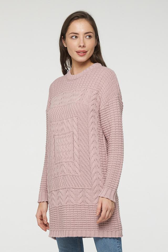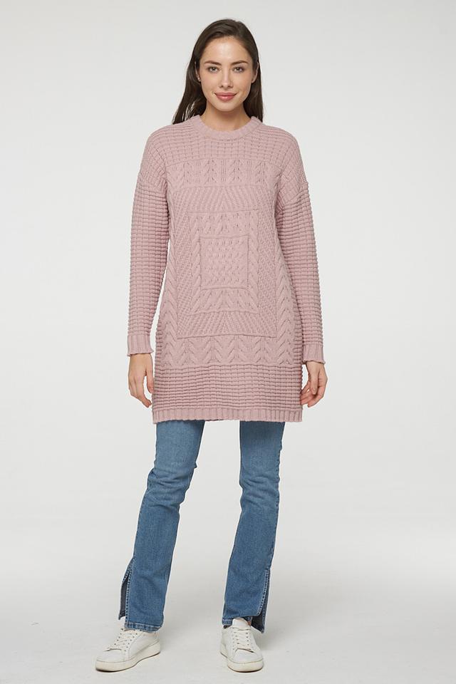 Женский джемпер VAY пудрового цвета – это стильная и уютная модель свободного кроя с выразительным узором. Джемпер выполнен из мягкого трикотажа с добавлением шерсти, что обеспечивает комфорт и тепло. Состав: пан 70%, шерсть 30%